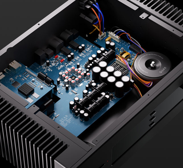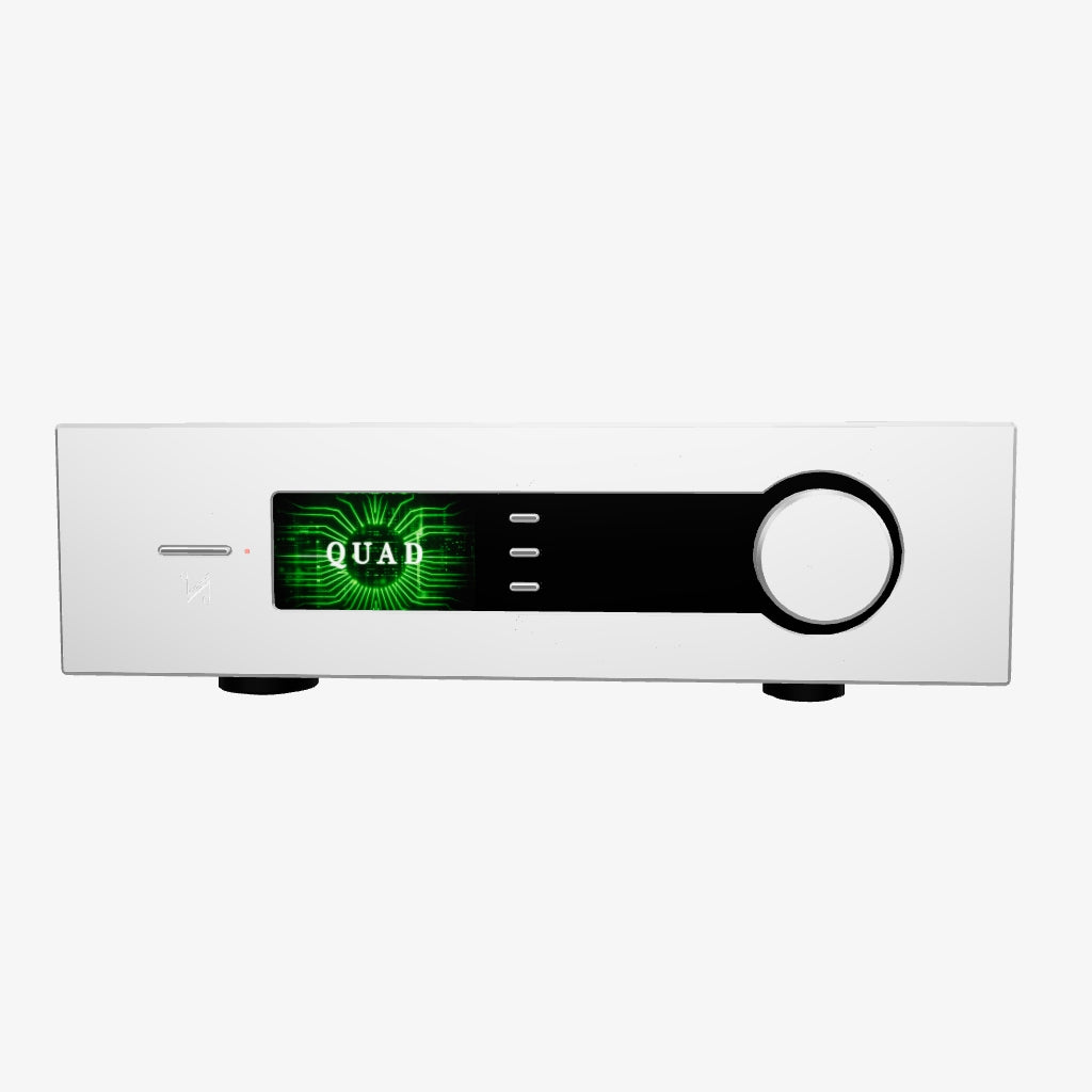 Matching the bold design and substantial form of the flagship series, the QUAD PLATINA STREAM distils generations of QUAD engineering into a network player designed for the modern listener. PLATINA STREAM combines the brand’s renowned musical integrity with a clean, purposeful industrial aesthetic: a rigid metal chassis, side-mounted heat sinks, anti-resonance feet and an anodised fascia speak to QUAD’s obsession with build quality. A single machined-aluminium knob and discreet function keys flank the crisp 4.3-inch IPS display, creating a digital streaming centre-piece that is both tactile and unmistakably QUAD