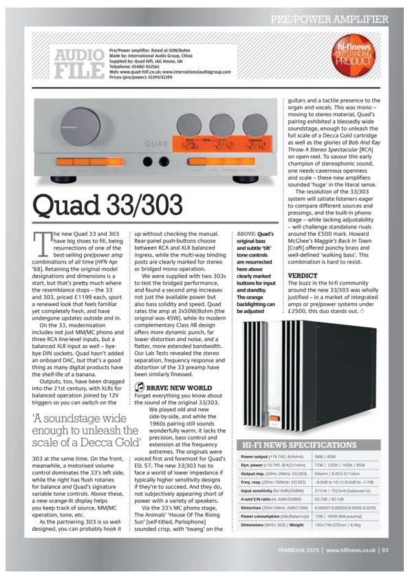 By revisiting the QUAD 33 and 303 components, QUAD demonstrates its authenticity, pedigree and excellence as a juggernaut of the British hi-fi world - past and present.
