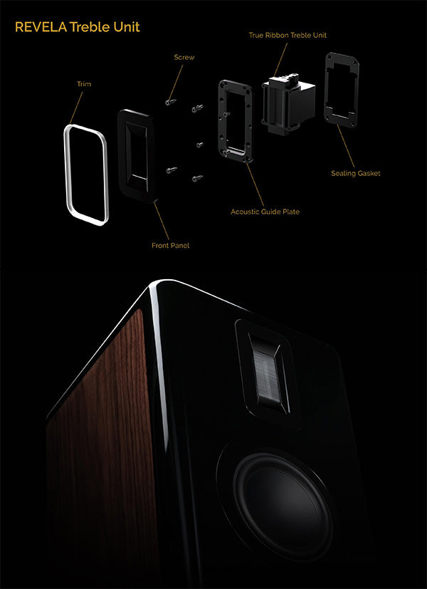 The Revela’s True Ribbon driver delivers effortlessly extended high frequencies that are audibly superior not only to those supplied by typical dome tweeters, but also other planar driver types that are not ‘true ribbons’. It works by positioning a ribbon of thin aluminium foil in a high-strength magnetic field, through which the audio signal flows from the amplifier.
